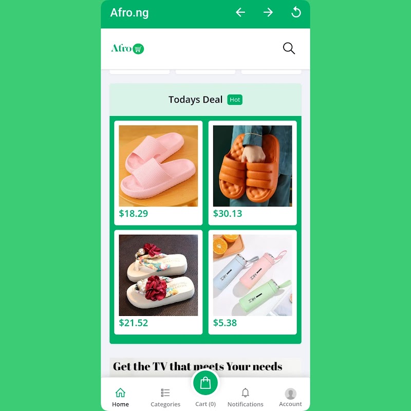 Sales Of Goods And Services ,trading And General Merchandise With The Afro.ng App Life Is Made Easy, We Bring The Market To You Through Our Online Marketplace Allowing You To Shop From The Comfort Of Your Home. You Can Buy New And Used Products, Rich Items And Trendy Goods All At An Affordable Price, And Organize Your Shopping Experience Today With Afro.ng We Keep Things Easy, fast And All With A Click Of A Button.