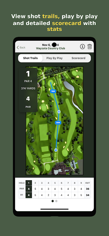 • প্রতি রাউন্ডের জন্য স্কোরকার্ড এবং শট ট্রেসার পর্যালোচনা করুন