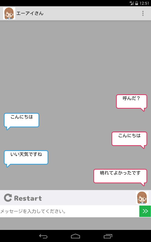 এই অ্যাপ্লিকেশনটি এআই এর সঙ্গে একটি চ্যাট উপভোগ করতে সক্ষম হবে। যাচ্ছে আরো ব্যবহারকারী সাথে একটি কথোপকথন শিখে আরও স্বাভাবিক কথোপকথন অর্জন।