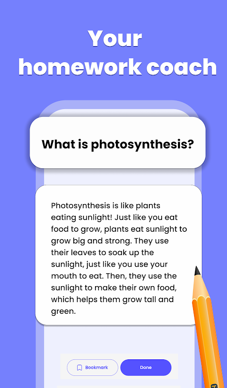 আমাদের হোমওয়ার্ক AI সমাধানকারী আপনাকে ধারণাগুলি আরও ভালভাবে বুঝতে এবং আপনার সামগ্রিক একাডেমিক কর্মক্ষমতা উন্নত করতে সহায়তা করে। একটি ছবি তুলুন এবং হোমওয়ার্ক সল্ভিং অ্যাপের মাধ্যমে যেকোনো কঠিন প্রশ্নের সমাধান করুন। হোমওয়ার্ক হেল্পার সব সাবজেক্ট অ্যাপ হল একটি এআই স্টাডি হেল্পার যা আপনাকে আপনার পরীক্ষায় সফল হতে এবং আপনার একাডেমিক লক্ষ্য অর্জনে সহায়তা করে। আপনি স্বাচ্ছন্দ্যে ছুটির হোমওয়ার্ক অ্যাসাইনমেন্টগুলি মোকাবেলা করার সাথে সাথে আপনার ক্ষমতার উপর আস্থা অর্জন করুন। হোমওয়ার্ক হেল্পার স্ক্যানার আপনাকে একজন স্বয়ংসম্পূর্ণ শিক্ষার্থী এবং সমস্যা সমাধানকারী হওয়ার ক্ষমতা দেয়।
