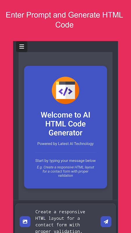 দ্রুত HTML কোড তৈরি করতে হবে? AI HTML কোড জেনারেটর হল একটি উন্নত AI-চালিত টুল যা আপনাকে কয়েক সেকেন্ডের মধ্যে প্রতিক্রিয়াশীল, সুগঠিত HTML কোড তৈরি করতে সাহায্য করে। আপনি একজন ওয়েব ডেভেলপার, ডিজাইনার বা শিক্ষানবিসই হোন না কেন, এই অ্যাপটি কোডিং প্রক্রিয়াকে সহজ করে, ন্যূনতম প্রচেষ্টায় ওয়েবসাইট, ফর্ম, লেআউট এবং আরও অনেক কিছু তৈরি করা সহজ করে।