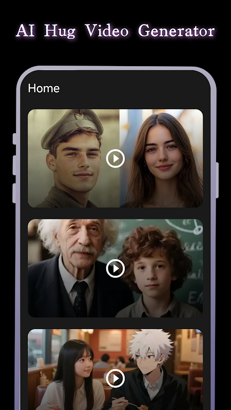 - AI আলিঙ্গন ভিডিও নির্মাতা: ফটোগুলি থেকে উষ্ণ আলিঙ্গন তৈরি করুন, যার সাথে আপনি সবচেয়ে বেশি মিস করেন তাদের সাথে ভার্চুয়াল আলিঙ্গন সহ৷
