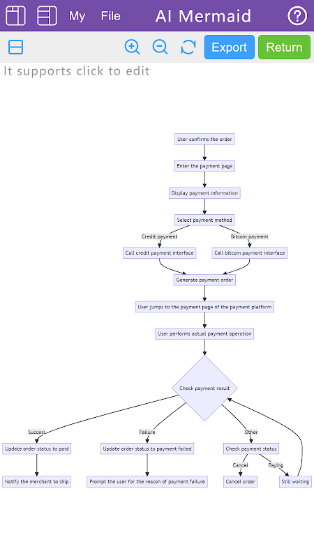 এআই + ফ্লোচার্ট জেনারেটর এবং সম্পাদক, কাজের দক্ষতা উল্লেখযোগ্যভাবে উন্নত করে।