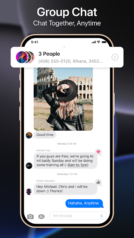 গ্রুপ বার্তাগুলির সাথে নমনীয় চ্যাটের অভিজ্ঞতা উপভোগ করুন, গুণমান না হারিয়ে উচ্চ-মানের ফটো এবং ভিডিওগুলি ভাগ করুন৷ আপনার গোপনীয়তা রক্ষা করতে স্প্যাম বার্তা এবং অবাঞ্ছিত নম্বর ব্লক করুন। ন্যূনতম OS শৈলী ইন্টারফেস একটি মসৃণ এবং স্বজ্ঞাত মেসেজিং অভিজ্ঞতা প্রদান করে। বিভিন্ন থিম, ওয়ালপেপার, চ্যাট বুদবুদ এবং ফন্ট দিয়ে আপনার চ্যাট ব্যক্তিগতকৃত করুন