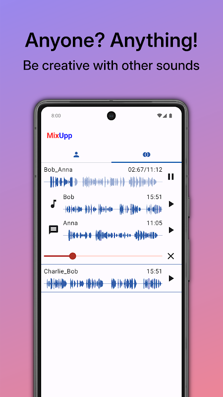 🎵 অডিও রেকর্ড এবং আমদানি করুন: একটি শব্দ রেকর্ড করতে, আপনার ডিভাইস থেকে সরাসরি অডিও ফাইল আমদানি করতে বা MixUpp এর সাথে আপনার প্রিয় ভয়েস বার্তা শেয়ার করতে আপনার ফোনের অন্তর্নির্মিত মাইক্রোফোন ব্যবহার করুন - ভয়েস ক্লোন যেকোনও ব্যক্তি এবং সৃজনশীল হন!