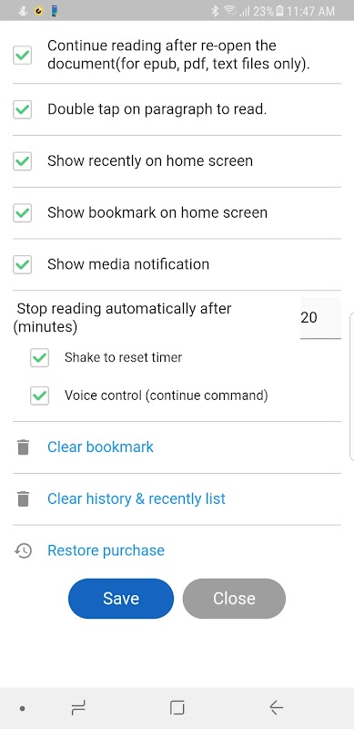 - এআই ভয়েস কন্ট্রোল: লিঙ্ক খুলতে, বিরতি দিতে, পড়া চালিয়ে যেতে, আগের পৃষ্ঠায় ফিরে যেতে কিছু সাধারণ ভয়েস কমান্ড ব্যবহার করুন.... শোনার সময় এবং আপনাকে ফোন স্পর্শ করার দরকার নেই।