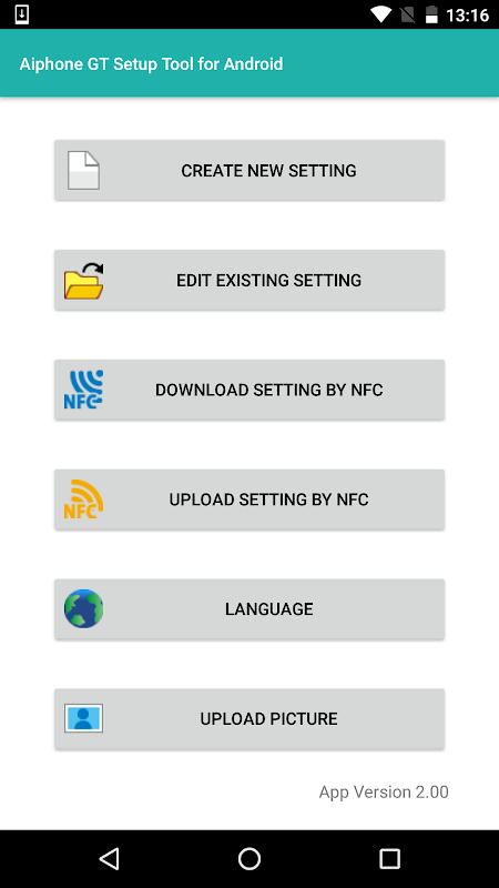 একটি Aiphone জি.টি. সিরিজ সিস্টেম সেট আপ হচ্ছে এখন দ্রুত এবং ঝগড়া মুক্ত। নতুন তৈরি অথবা একটি সিস্টেম পরিবর্তন করেন, তখন কেবল একটি NFC সামঞ্জস্যপূর্ণ জি.টি. সিরিজ স্টেশনে একটি Android ডিভাইসের সাথে ডেটা আপলোড করুন।