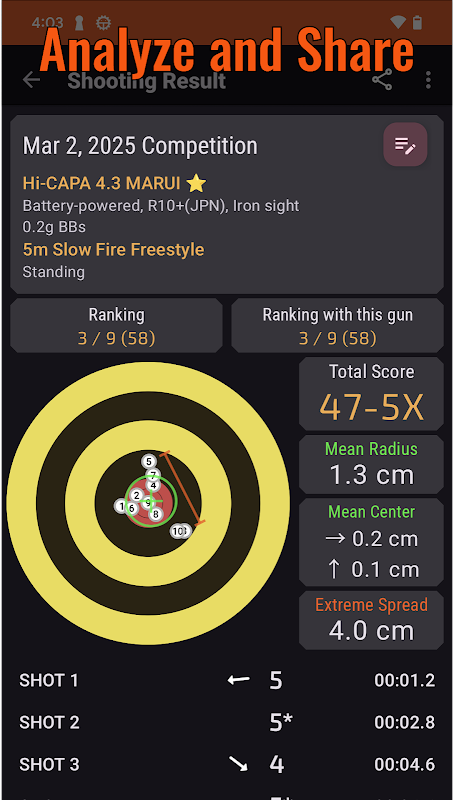 আপনার শুটিং ফলাফলগুলি সংরক্ষণ করুন--ভিডিওগুলি সহ--বিস্তারিত পরিসংখ্যান পর্যালোচনা করুন এবং সোশ্যাল মিডিয়াতে বন্ধুদের সাথে আপনার সেরা মুহূর্তগুলি ভাগ করুন৷