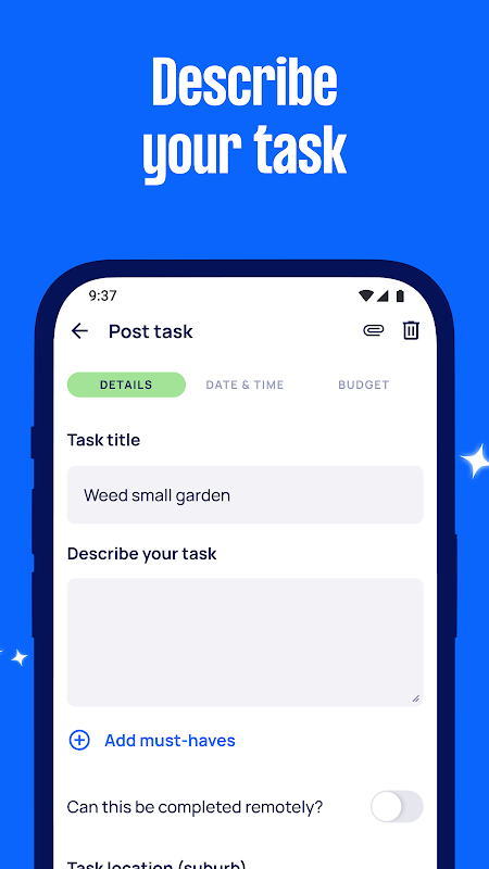 Remember, if you come across any issues, please visit support.airtasker.com or let us know through the Help menu inside the app.