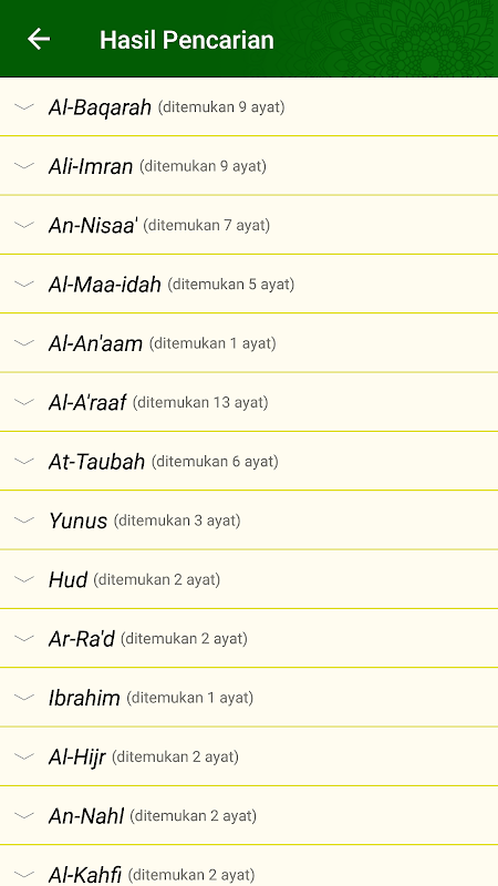 - 30 জুজ আল কুরআন অনুযায়ী তালিকা