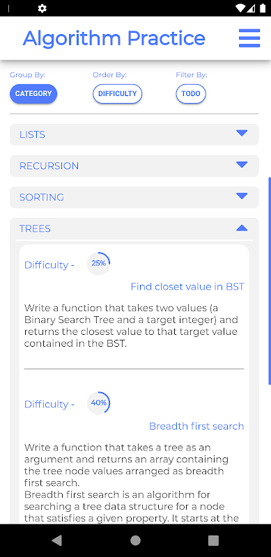 সফটওয়্যার ডেভেলপমেন্টে ব্যবহৃত অ্যালগরিদম সমাধান করার অনুশীলন করুন। সাক্ষাত্কারের জন্য বা ব্যক্তিগত বিকাশের জন্য প্রস্তুত করতে সহায়তা করার জন্য। অ্যালগরিদমগুলির বিরুদ্ধে আপনার সমাধানগুলি পরীক্ষা করতে আমাদের কোড সম্পাদকে জাভাস্ক্রিপ্ট ব্যবহার করুন৷