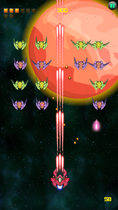 - আপনার পথে সমস্ত শত্রুদের ধ্বংস করুন এবং আপনার স্পেসশিপের জন্য কয়েন এবং পাওয়ার-আপ সংগ্রহ করুন।