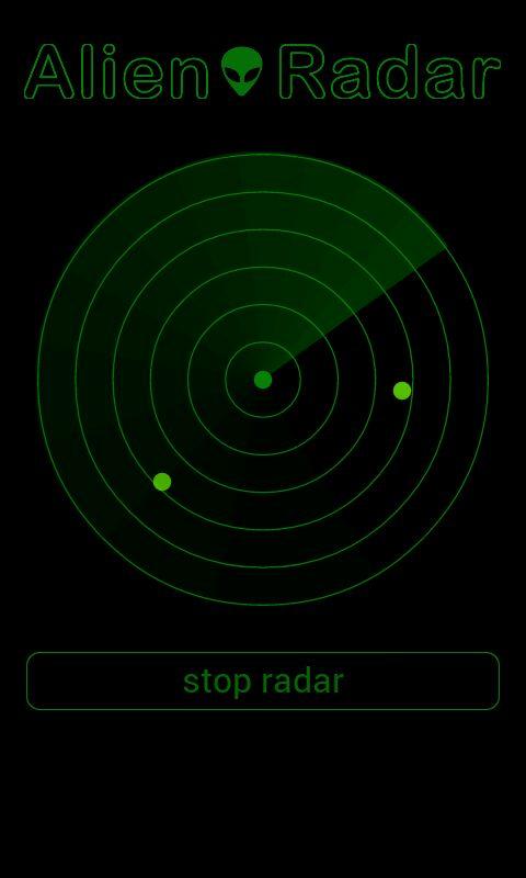 Alien Radar is a simulation of a locating device, which scans the sky and space for aliens and UFOs. The animation is constructed like a real radar. You should be aware, that this is not possible with a simple smartphone.