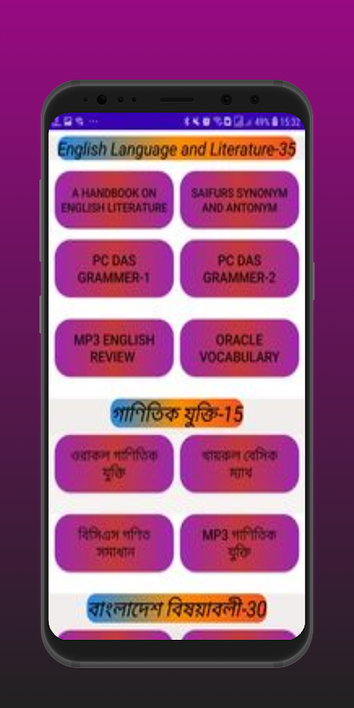 In this Application you can read all books those are mandatory for your BCS preparation .Here you can also download all books but i would like to request you to buy real book from publisher for better experience. Here we have included BCS all books according to preliminary syllabus .Apart from BCS you can also take your others competitive govt. job preparation through this app. For preliminary preparation you will get here Bangla, English, Math, General Science, Mental ability, Geography, Ethics, ICT as well as Class six , class seven, class eight Board books. if you have any complaint against this app please feel free to contact us through email or let us know in the review. If your complaint is legal we will solve the issue immediately.