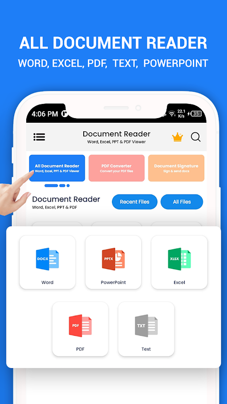 অল ডকুমেন্ট রিডারের সাহায্যে, আপনি PDF ফাইল, WORD ফাইল, DOCX ফাইল, EXCEL ফাইল, PPTX ফাইল এবং টেক্সট ফাইল দেখতে পারেন।