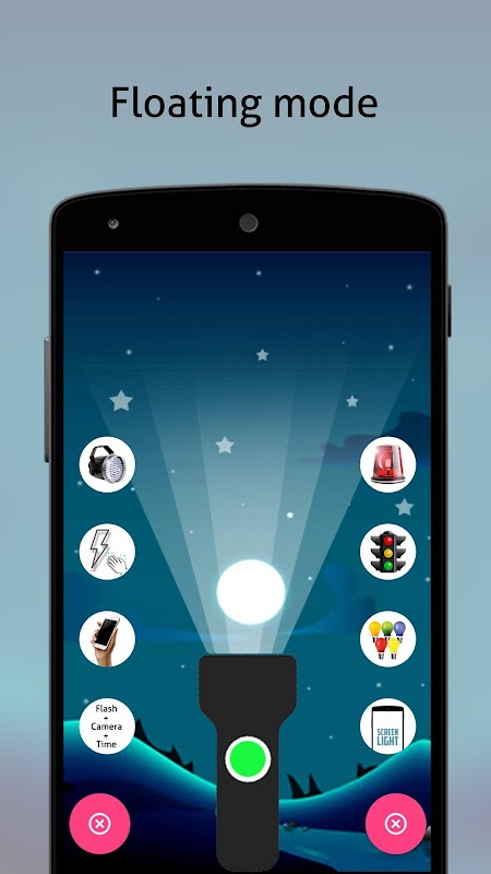 Circle Theme : Has options displayed in a circle for easy identification to turn ON/OFF your Flash Light.