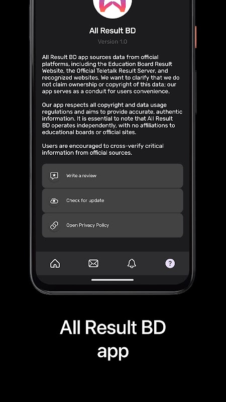 এই সরকারী মালিকানাধীন ওয়েবসাইটগুলিতে আপনাকে সুবিধাজনক অ্যাক্সেস দেওয়ার জন্য আমরা অ্যাপের মধ্যে eboardresults.com এবং educationboardresults.gov.bd সংহত করেছি। দয়া করে মনে রাখবেন যে এই ওয়েবসাইটগুলি জনসাধারণের জন্য অবাধে অ্যাক্সেসযোগ্য। এটা স্পষ্ট করা গুরুত্বপূর্ণ যে সরকার বা Nixtec সিস্টেমের সাথে আমাদের কোনো সম্পর্ক নেই।