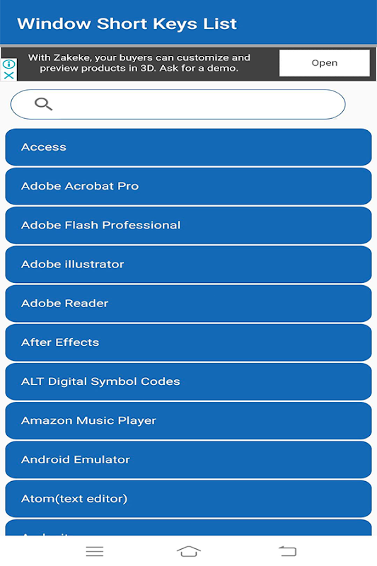 With search feature you can search for the required shortcut key from the targeted software you need. This app is very helpful for both professionals as well as students.