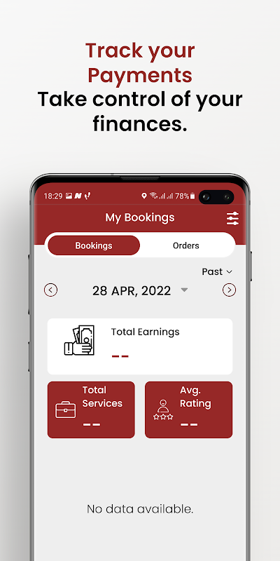 আপনার অনুরোধের ইতিহাস চেক করতে "বুকিং" এবং আপনার উপার্জন ট্র্যাক করতে এবং তোলার জন্য "ওয়ালেট" ব্যবহার করুন৷