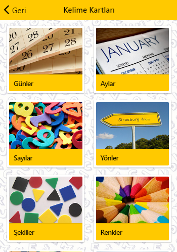 বিষয় অবস্থিত: দিন, মাসের পর মাস, সংখ্যা, দিকনির্দেশ, আকার, রং, সময়, শরীর, সনাক্তকরণ এবং ডেটিং, শপিং, ্ভচগ্ম, প্রাণী ও লক্ষণ (ট্রাফিক চিহ্ন)