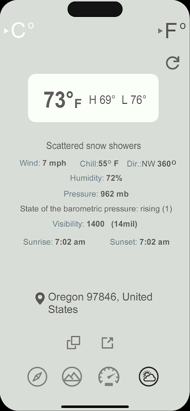 বহিরঙ্গন উত্সাহী, ভ্রমণকারী এবং অ্যাডভেঞ্চার অনুসন্ধানকারীদের জন্য ডিজাইন করা চূড়ান্ত আলটিমিটার, কম্পাস এবং স্পিডোমিটার অ্যাপটি আবিষ্কার করুন৷ আপনি হাইকিং, ড্রাইভিং বা নতুন জায়গা অন্বেষণ করুন না কেন, এই অ্যাপটি এক জায়গায় সঠিক উচ্চতা, দিকনির্দেশ, গতি এবং আবহাওয়ার তথ্য প্রদান করে।