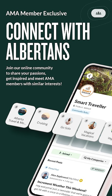 সম্প্রদায়: আপনার পছন্দের বিষয়গুলিতে একই রকম চিন্তাভাবনা সম্পন্ন আলবার্টানদের সাথে সংযোগ স্থাপন করুন। কোনও সোশ্যাল মিডিয়া অ্যাকাউন্টের প্রয়োজন নেই! আমাদের আগ্রহ-ভিত্তিক গ্রুপগুলিতে যত খুশি যোগদান করুন, তারপর কথোপকথন শুরু করুন, অন্যদের উত্তর দিন, অথবা ছবি শেয়ার করুন।