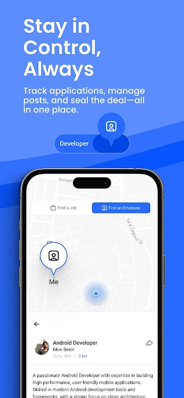 অ্যাপটি চাকরিপ্রার্থী এবং নিয়োগকর্তারা একে অপরকে সরাসরি বার্তা পাঠাতে দেয়, কাজের বিবরণ স্পষ্ট করতে এবং তাত্ক্ষণিকভাবে সংযোগ করতে সহায়তা করে।