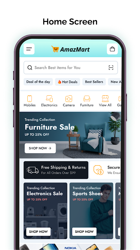 AmazMart - প্রতিক্রিয়া নেটিভ ইকমার্স মোবাইল অ্যাপ