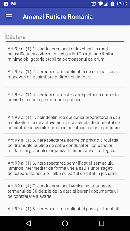 Aplicatia Amenzi Rutiere România permite o vizualizare rapida a amenzilor rutiere, a articolelor si sanctiunea lor. Exista o categorizare usoara cit si divizarea amenzilor pe clase.