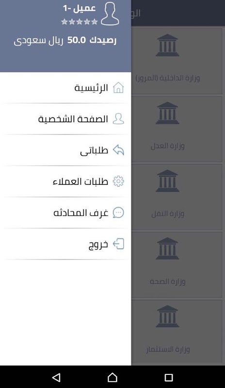 The application helps customers to search for service providers and delegates in government ministries as well as private entities (insurance companies, customs clearance, travel and tourism companies)