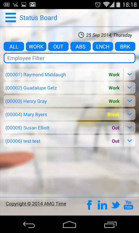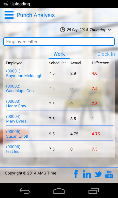 AMG মোবাইল অ্যাপ্লিকেশন / আউট উপস্থিতি তথ্য দেখছেন, সেইসাথে punching পারবেন