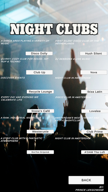 অ্যাপের তালিকাটি ব্যবহারকারীদের সেরা গুড ফুড, নাইট ক্লাব, ইনডোর ফান, আউটডোর ফান, সিনিক পার্কের সাথে সংযুক্ত করে এবং আমস্টারডামে বিক্রয়, থিম পার্কের মজা এবং আশ্চর্যজনক খাবার এবং আরও অনেক কিছু সম্পর্কে তাৎক্ষণিকভাবে আপনাকে জানাতে একটি বিজ্ঞপ্তি বৈশিষ্ট্য রয়েছে।