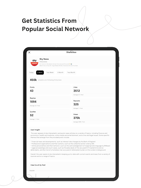 থ্রেডের জন্য অ্যানালিটিক্স-এ স্বাগতম, যে কোনো থ্রেড অ্যাকাউন্টের জন্য আপনাকে ব্যাপক অন্তর্দৃষ্টি এবং বিশ্লেষণ প্রদান করার জন্য ডিজাইন করা একটি উদ্ভাবনী অ্যাপ। একটি মসৃণ এবং সহজে-নেভিগেট ইন্টারফেসের সাথে, অ্যাপটি আপনাকে পোস্ট, ভিউ, লাইক, উত্তর, রিপোস্ট, উদ্ধৃতি এবং আরও অনেক কিছুর বিশ্লেষণে গভীরভাবে ডুব দিতে দেয়।