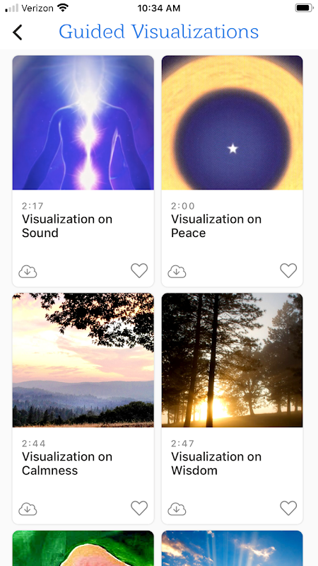 ভিডিওগুলি বা অডিও-কেবলমাত্র আপনার ব্যান্ডউইদথ সংরক্ষণ করার প্রয়োজন থাকলে আপনি অফলাইনে দেখার জন্য ধ্যানগুলি ডাউনলোড করতে পারেন। বিভিন্ন ধরণের গাইডেড অভিজ্ঞতা উপলব্ধ রয়েছে যার মধ্যে রয়েছে: