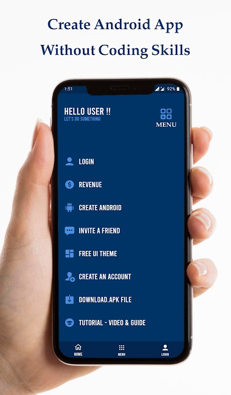 আপনার নিজের অ্যাপ তৈরি করুন (100% ফ্রি এবং কোয়াডিং ছাড়াই) এবং আপনার অ্যাপ থেকে অর্থ উপার্জন করুন।
