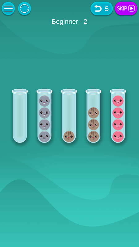 সমস্ত প্রাণীকে একই ধরণের গ্রুপ না করা পর্যন্ত টিউবে প্রাণী বাছাই করুন। স্তরটি জয়ের জন্য আপনাকে একই টিউবে একটি বলের মতো প্রাণী সাজাতে হবে।