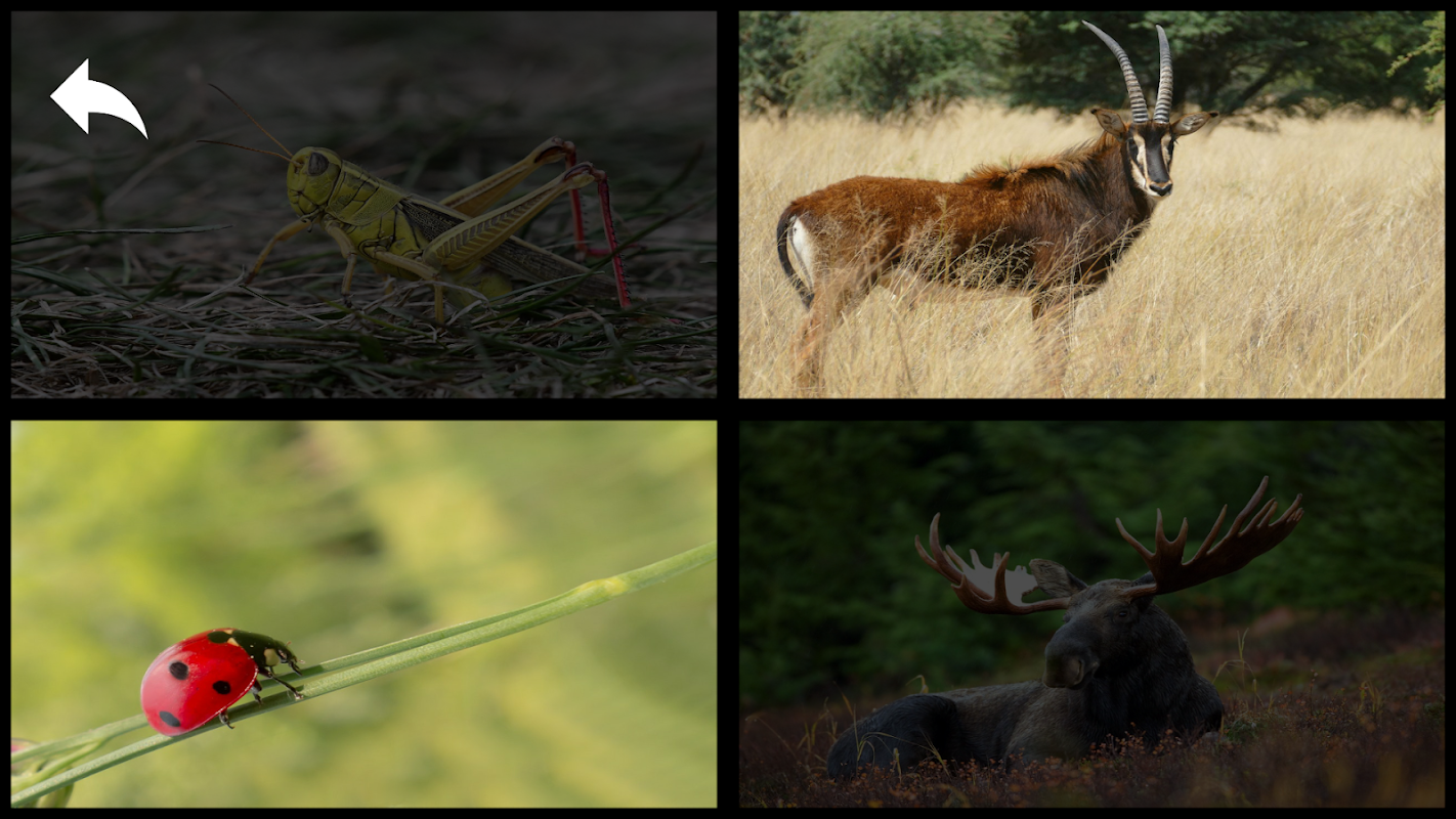* 4 বিভাগ: সমস্ত প্রাণী, খামার পশু; বনজন্তু; বহিরাগত পশু.