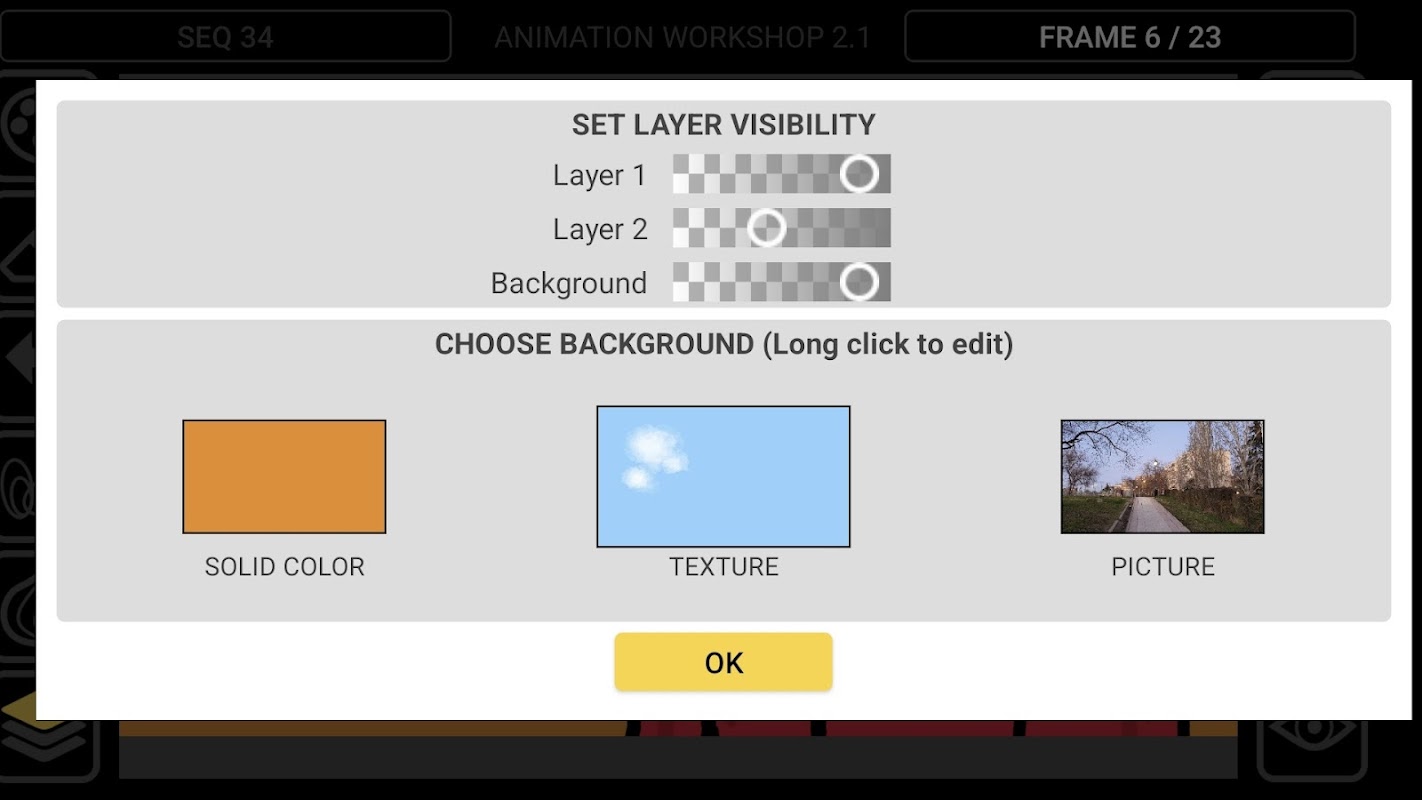 ● ৮টি টেক্সচার বিকল্প, কঠিন রঙ, অথবা গ্যালারি থেকে ছবি সহ ব্যাকগ্রাউন্ড স্তর