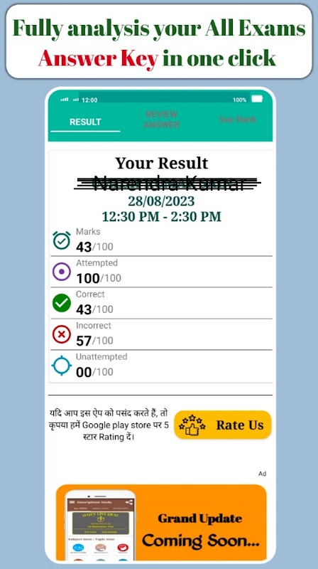 একক ক্লিকে আপনার উত্তর কী বিশ্লেষণ করুন, পরীক্ষায় সর্বভারতীয় র্যাঙ্ক দেখুন, স্বাভাবিক