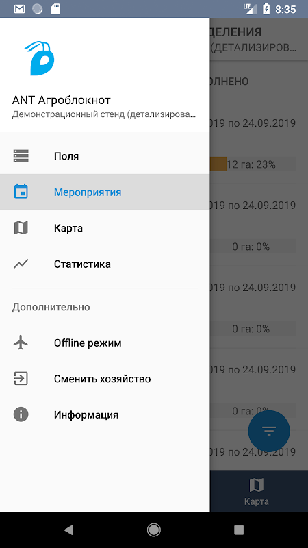 Приложение “Агроблокнот” предназначено для протоколирования технологических операций и их параметров в рамках мероприятий: фактически выполненных, находящихся в работе, а также запланированных.