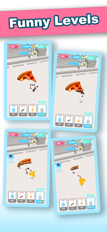 যেহেতু আপনার পিঁপড়া কলোনি প্রতিটি পর্যায়ে নতুন এবং উত্তেজনাপূর্ণ খাবার আবিষ্কার করে, আপনার কাজ হল আপনার সংস্থানগুলি পরিচালনা করা এবং যত তাড়াতাড়ি সম্ভব খাবার খাওয়ার কৌশল করা। আপনি স্তরের মধ্য দিয়ে অগ্রসর হওয়ার সাথে সাথে উদার সোনার পুরষ্কার অর্জন করুন, যা আপনি পিঁপড়া কেনা এবং আপগ্রেড করতে ব্যবহার করতে পারেন, আরও দক্ষ খাদ্য গ্রহণের জন্য তাদের গতি, শক্তি এবং সংখ্যা বৃদ্ধি করতে পারেন। আপনার পিঁপড়া কলোনি প্রসারিত করুন এবং উন্নতি লাভ করুন!