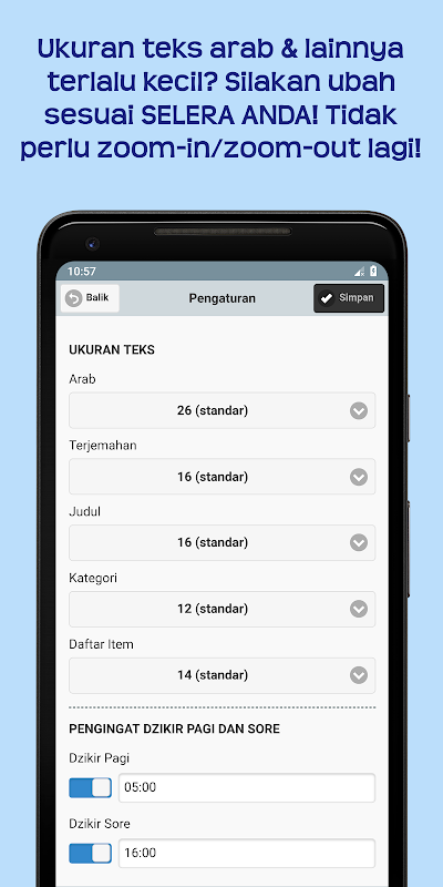 • টেক্সট আকার পরিবর্তন করা যেতে পারে! আরবি টেক্সট / অন্যদের খুবই ছোট? আপনার স্বাদ অনুযায়ী পরিবর্তন করুন!