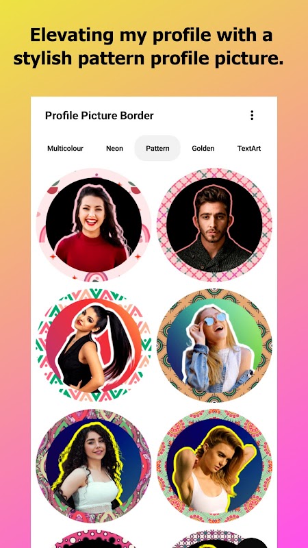 - 🖼 প্রোফাইল পিকচার বর্ডার: ব্যক্তিত্বের স্পর্শ যোগ করুন আড়ম্বরপূর্ণ বর্ডারগুলির বিস্তৃত অ্যারের সাথে আপনার প্রোফাইল ছবিতে৷