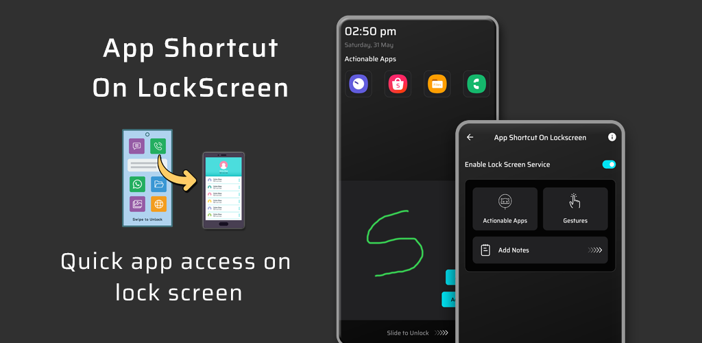 আপনার Android লক স্ক্রিনে সরাসরি শর্টকাট, অঙ্গভঙ্গি, এমনকি নোট যোগ করার জন্য চূড়ান্ত অ্যাপ, লকস্ক্রিনে অ্যাপ শর্টকাট দিয়ে সুবিধার একটি নতুন স্তর আনলক করুন! আপনি আপনার প্রিয় অ্যাপগুলি দ্রুত অ্যাক্সেস করতে চান বা আপনার ফোনে গুরুত্বপূর্ণ নোটগুলি লিখতে চান, এই অ্যাপটি আপনাকে কভার করেছে।