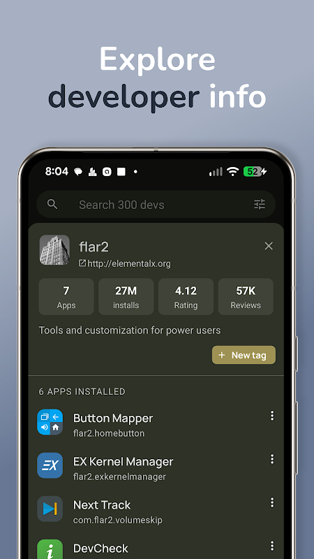 • ডেভেলপারের বিস্তারিত তথ্যসহ ডেভেলপার অনুযায়ী আপনার সমস্ত অ্যাপ দেখুন