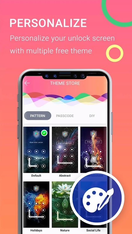 Pattern lock & password lock have many kinds of themes. Pattern lock is faster to unlock. And in the mode of pattern lock, you can hide draw path. Much safer for you to lock apps.