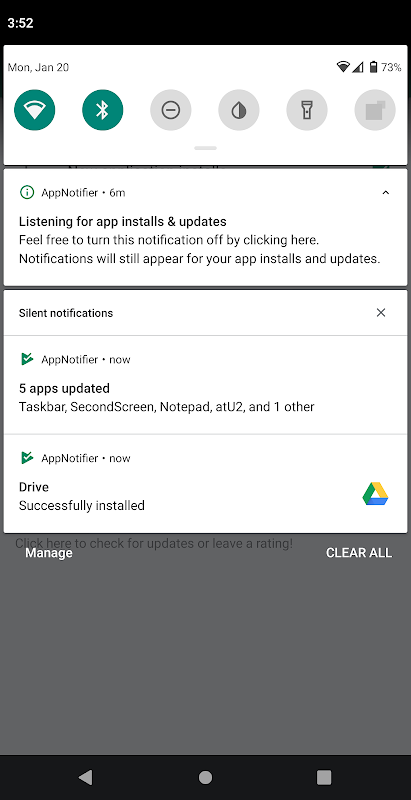 &ষাঁড়; অ্যাপ্লিকেশনগুলি ইনস্টল করার মাঝখানে থাকা অবস্থায় অ্যাপটি সনাক্ত করতে পারে না, সুতরাং কোনও অ্যাপ্লিকেশন কখন ডাউনলোড হবে এবং ইনস্টল বা আপডেটের বিজ্ঞপ্তিগুলি উপস্থিত হবে তার মধ্যে একটি সংক্ষিপ্ত বিলম্ব হবে।