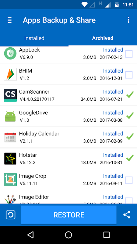 2- Apps Backup & Share can only restore files that have been backed up Previously.