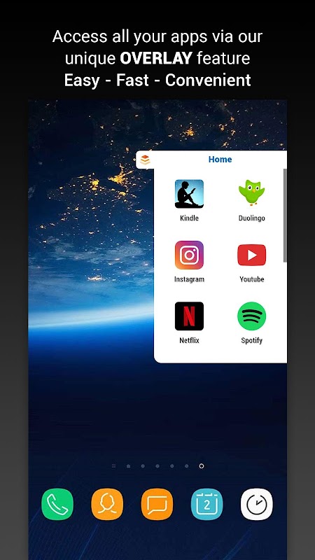 To make things really efficient, the Overlay feature makes it a breeze to quickly launch the app you need. This drawer type solution, allows you to open any app from anywhere on your device, even when you are using another app.