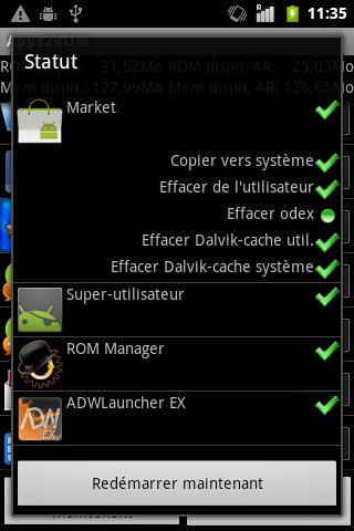 - Not all application like to be moved to system and will cause them to "Force Close". To resolve, remove the app with Apps2ROM and reinstall it from play store. (Adblock Plus is known to create problems).